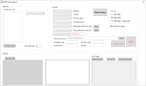 VKIST face capture còn tích hợp khả năng kiểm soát cường độ sáng của hệ thống đèn chiếu bằng cách truyền dữ liệu từ các tệp cấu hình tới mạch điều khiển ánh sáng. Nhờ đó, môi trường ánh sáng trong quá trình chụp được kiểm soát chính xác, đảm bảo chất lượng ảnh đồng đều là yếu tố then chốt trong các ứng dụng AI.